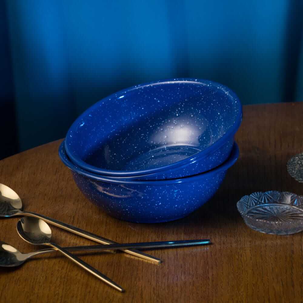 - 4 miseczki emaliowane w kolorze ciemno niebieskim, średnica 16 cm